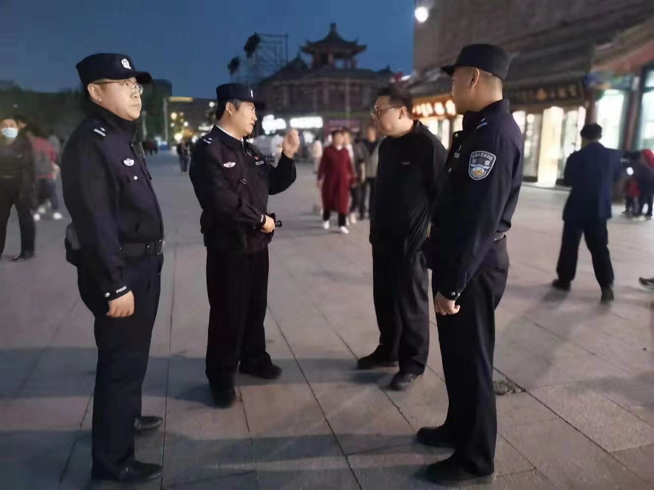 5月9日晚,市局治安管理支队支队长张书欣、副支队长陈晓东、行动大队大队长张治钢和玉泉公安分局治安大队大队长魏海军带领警力支援长和廊派出所,在辖区重点部位全力开展巡查防控工作,并对辖区夜市治安情况进行检查。在巡逻中,民辅警开展了严密的清理清查,最大限度消除各类风险隐患,切实维护夜市周边治安稳定,并暖心叮嘱就餐市民减少饮酒,平安回家,遇到困难及时拨打110,民警会第一时间赶到现场进行处置。